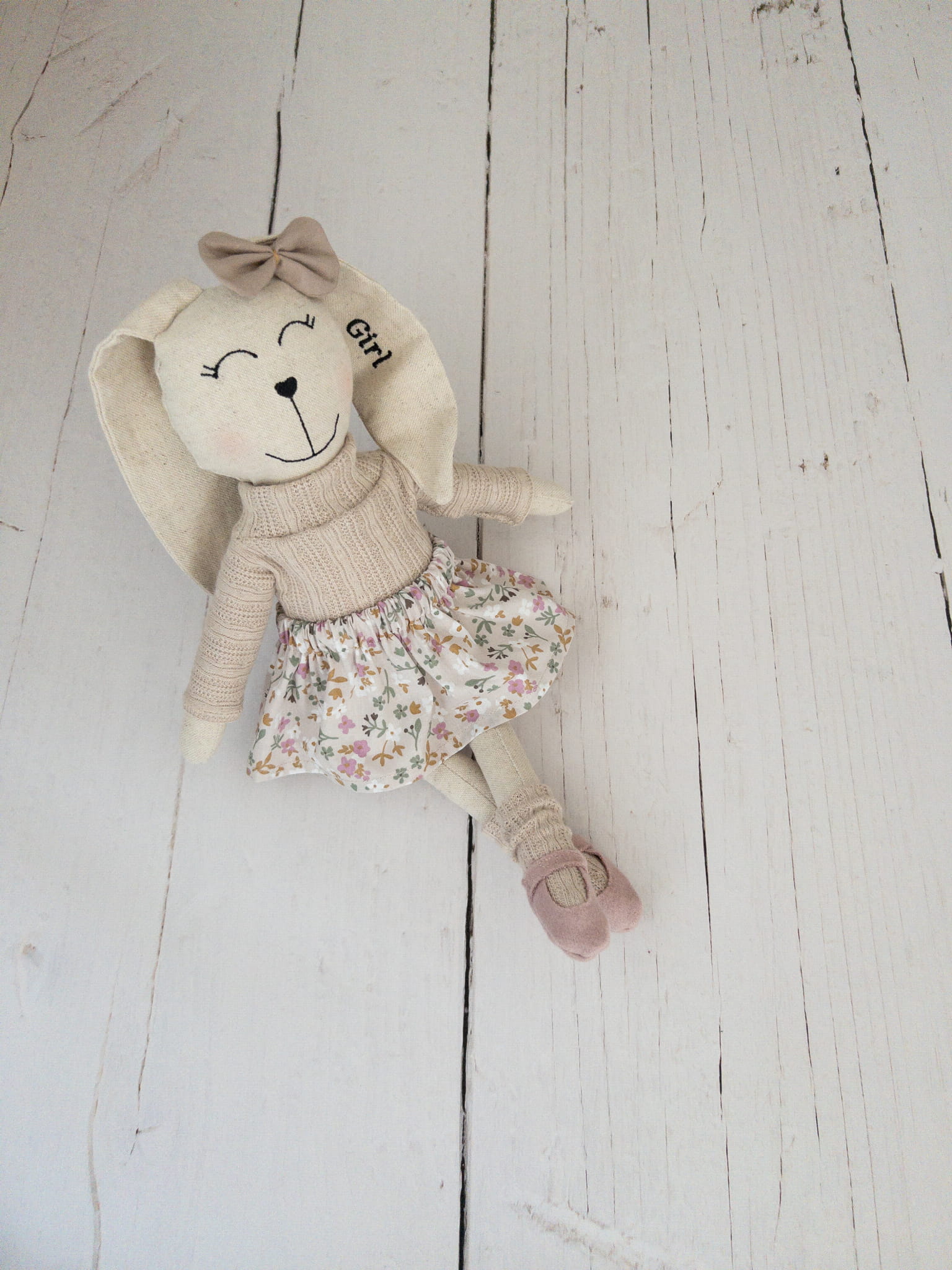 Uszyta jest z miękkiej tkaniny dekoracyjnej w kolorze lnu, wypełniona antyalergiczną kulką sylikonową.
