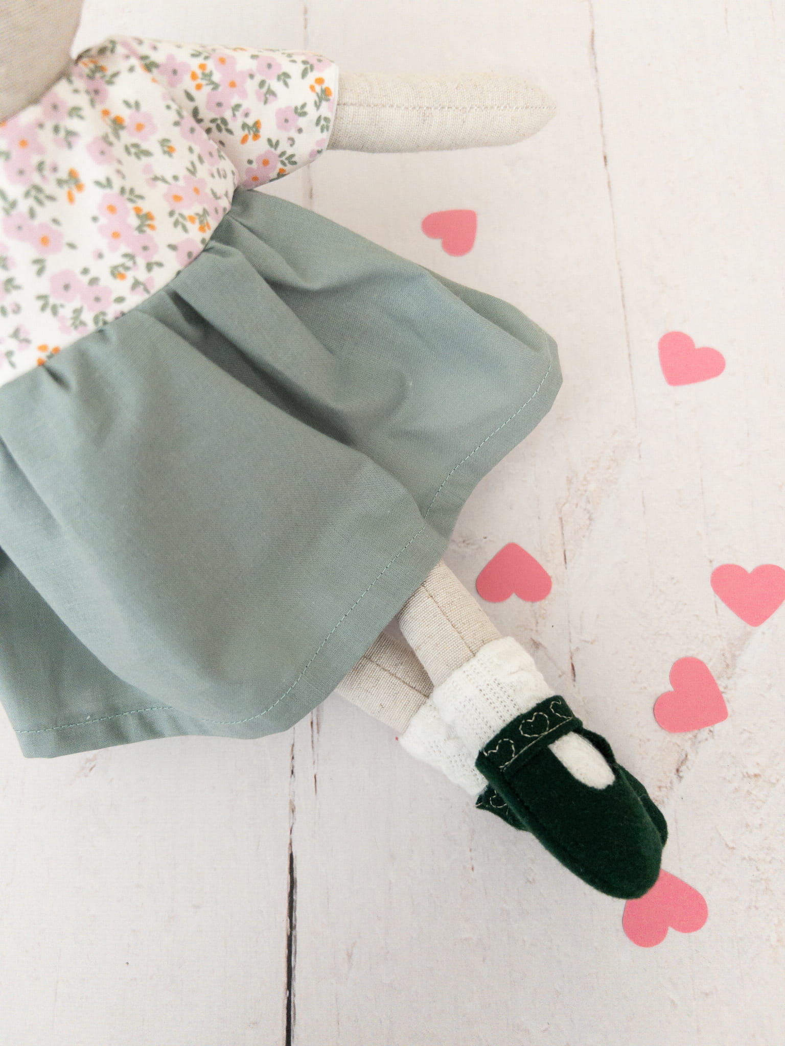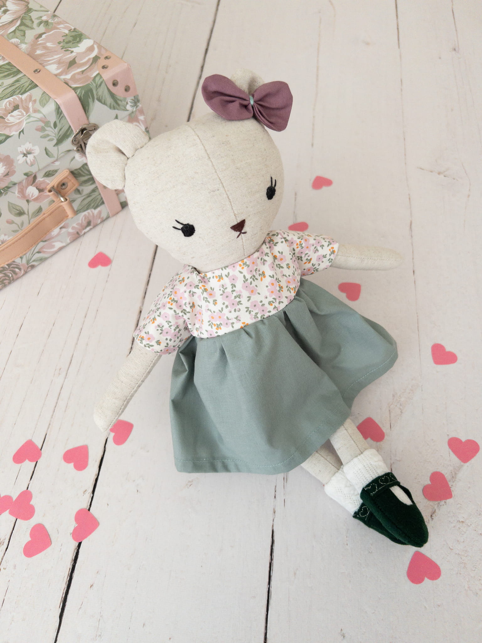 Lalka uszyta jest z miękkiego materiału, wypełniona antyalergiczną kulką sylikonową.