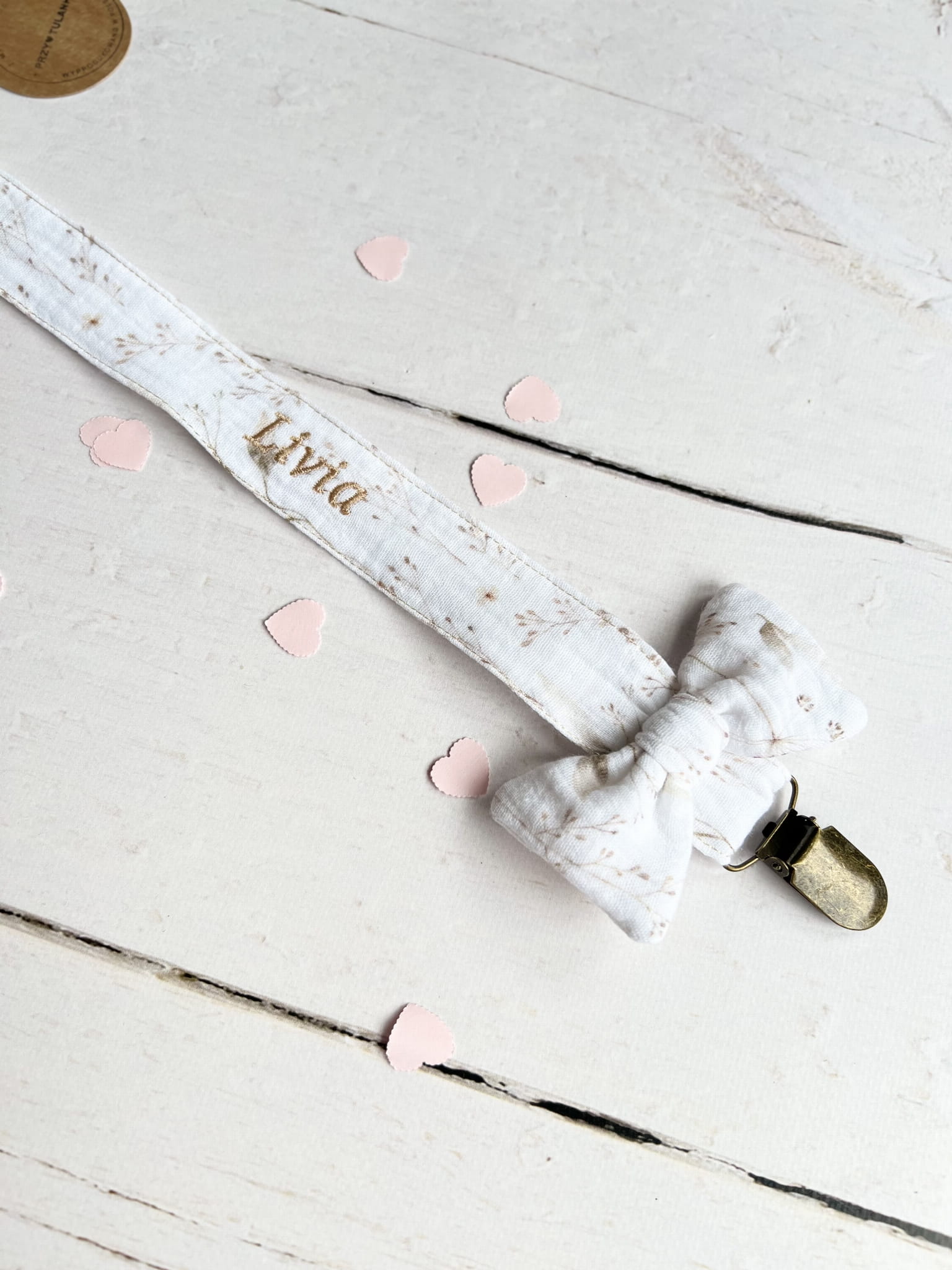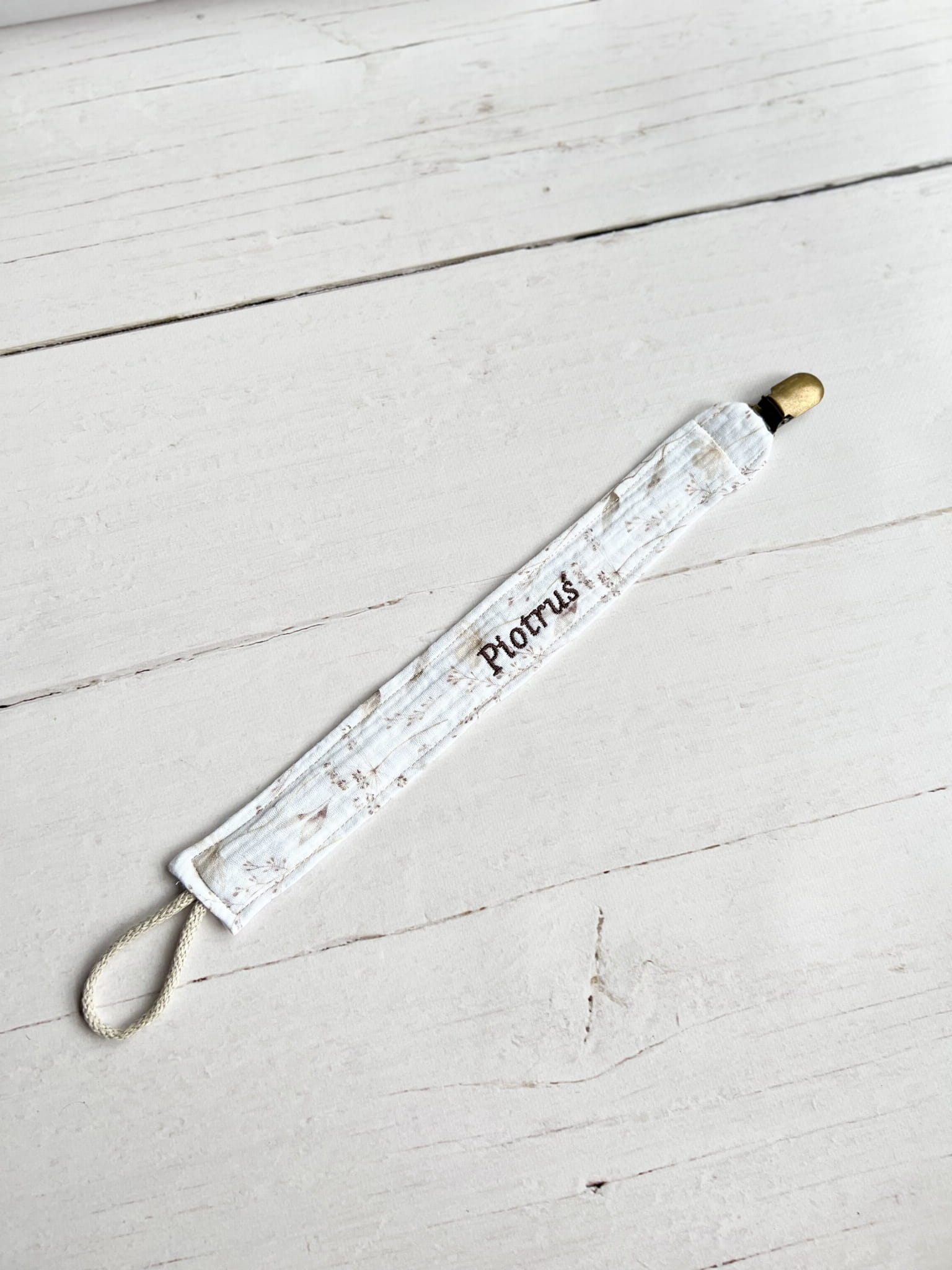 Zawieszka do smoczka - muślin Nature beżowe gałązki vintage