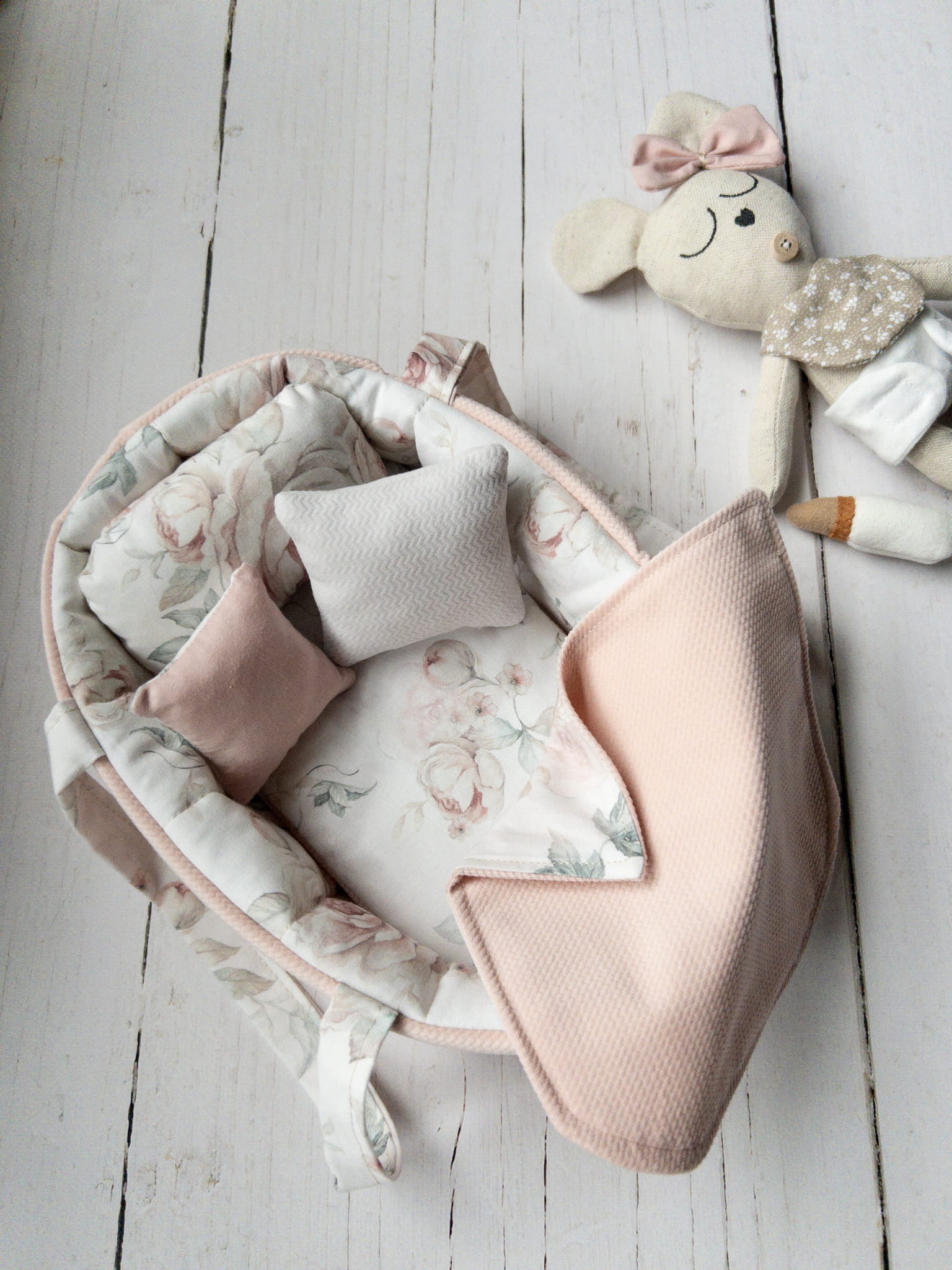 Całość wykonana została z certyfikowanych tkanin bezpiecznych dla dzieci – delikatnych dla skóry, trwałych i estetycznych. Motyw przewodni to jasnoróżowe akcenty z uroczym wzorem w róże, które pobudzają dziecięcą wyobraźnię.